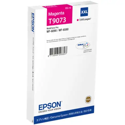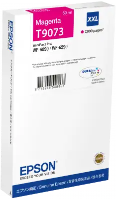 Epson T9073. Värvilise tindi tüüp: Pigmendipõhine tint, Värvilise trüki lehekülgede arv: 7000 lehekülge, Värvilise tindi hulk: 69 ml, Kogus pakis: 1 tk