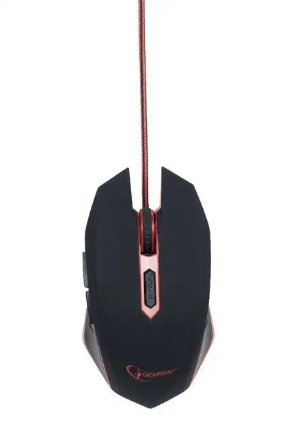 Summary | Gembird MUSG-001-R. Form factor: Ambidextrous. Device interface: USB Type-A, Movement resolution: 2400 DPI, Buttons type: Pressed buttons, Buttons quantity: 6, Scroll type: Wheel. Product colour: Black, Red |