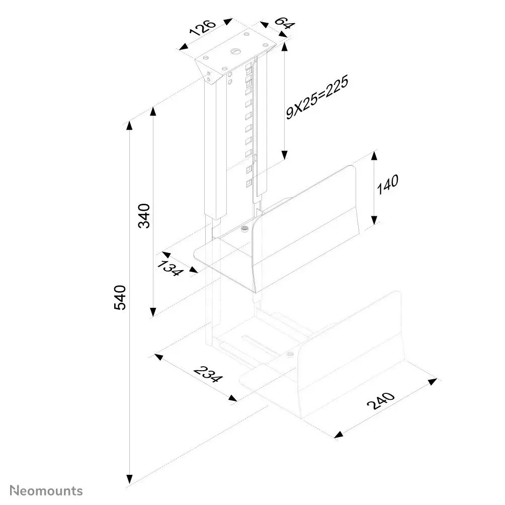 This NewStar CPU mount allows vertical installation of computers. Hide your cables and keep the workplace nice and tidy.